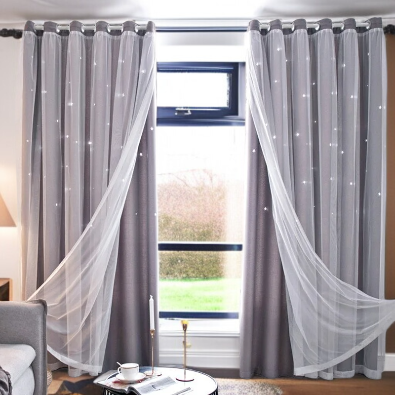 침실 차광 커튼 완제품 이중 레이스 펀칭 차광 커튼 별 차광 커튼